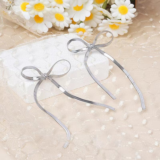 CZTICLE® Aria Bow & Chain Earrings - Silver