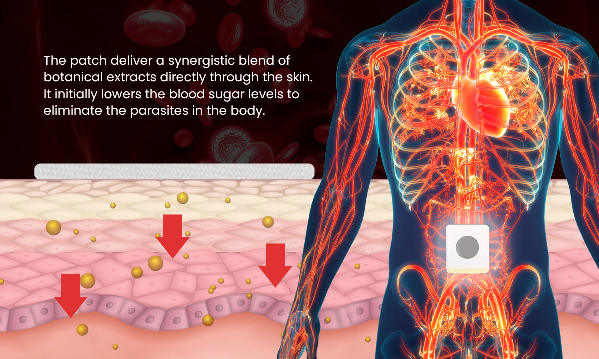 The patch utilizes a transdermal delivery system to gradually release a blend of herbal extractsthe skin to promote insulin sensitivity, improve glucose uptake by cells, and stabilize blood sugar levels to blocks all vital functions of these parasites