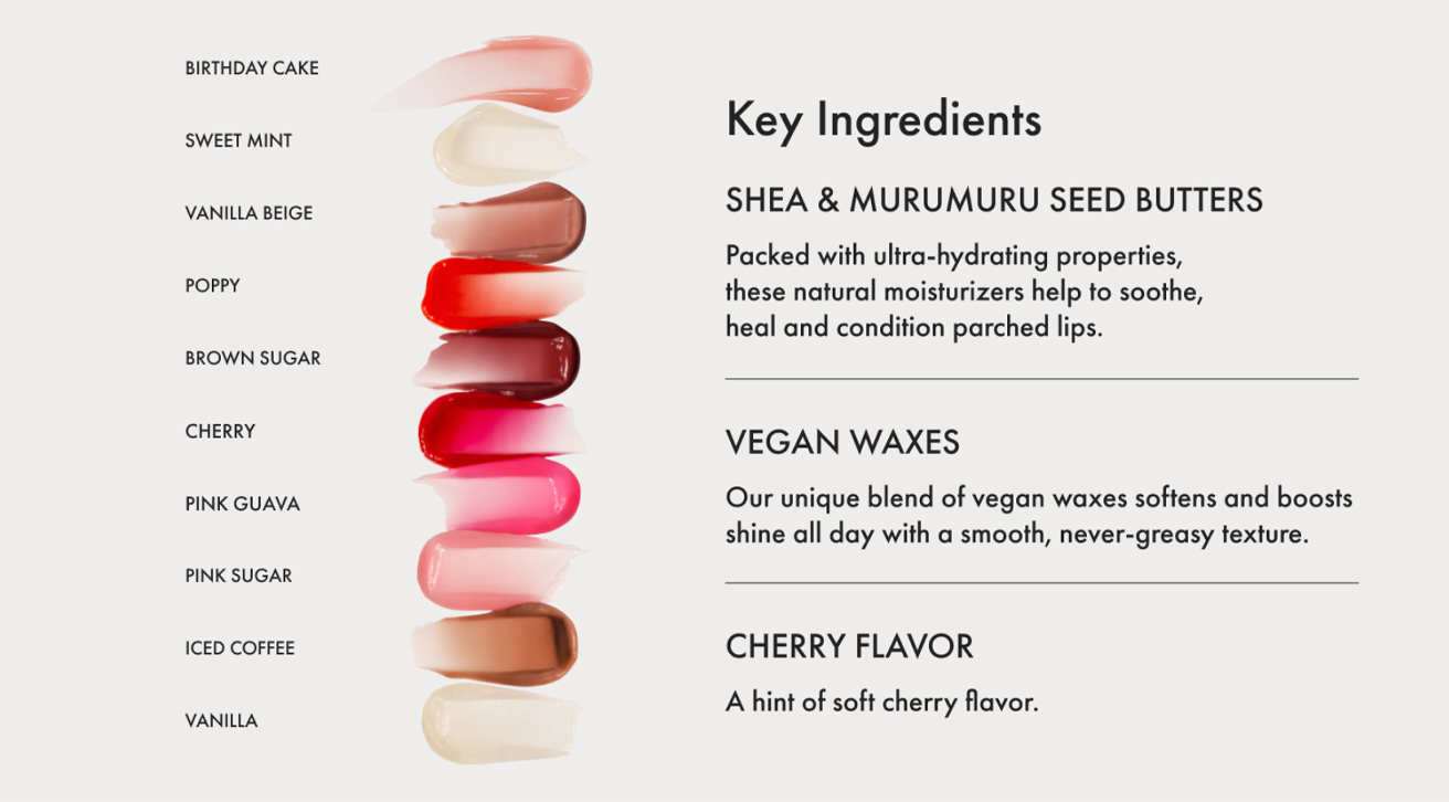 • The unique blend of vegan waxes will soften and boost shine all day with a smooth, never-greasy texture that feels heaven sent