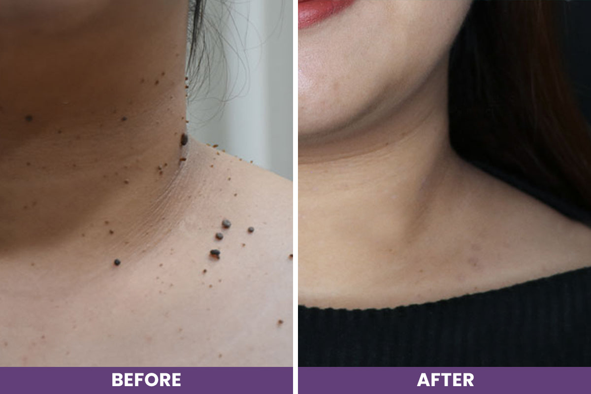 Skin tags and moles are harmless skin growths that often form in areas where the skin experiences friction, such as the neck, armpits, and eyelids. While they don’t pose health concerns, their appearance can negatively impact a person’s self-esteem and comfort.