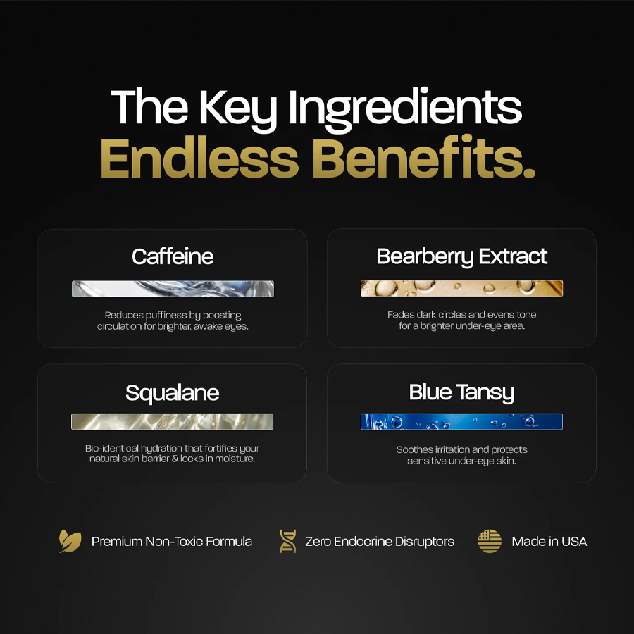 Most eye creams are either filled with cheap, harsh compounds that can irritate sensitive skin, or they're "clean" but ineffective. BSEAD delivers both: powerful results using only premium non-toxic ingredients like bio-identical squalane, brightening bearberry extract, blue tansy and caffeine. Real results with zero compromise.