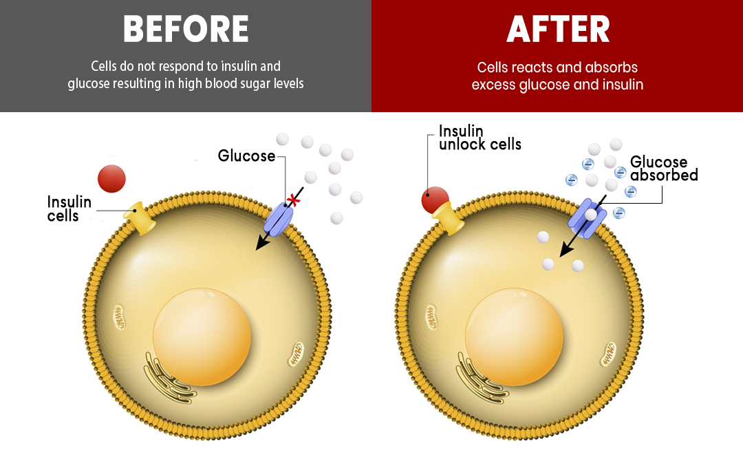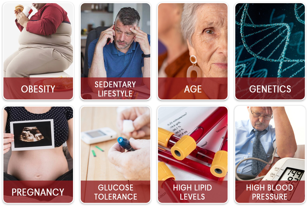 Excessive glucose circulating in the blood can lead to diabetes, primarily through insulin resistance. Insulin resistance occurs when cells in muscle, fat, and the liver do not respond to insulin as they should.² There are numerous factors and conditions contributing to varying degrees of insulin resistance, including high blood pressure, high lipid levels, glucose tolerance, pregnancy, genetics, aging, a sedentary lifestyle, and obesity.